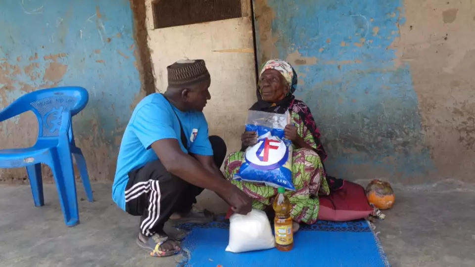 Our field rep sits with an elderly women during our Ramadan food package distribution. These heartfelt. moments bring hope and instill togetherness.